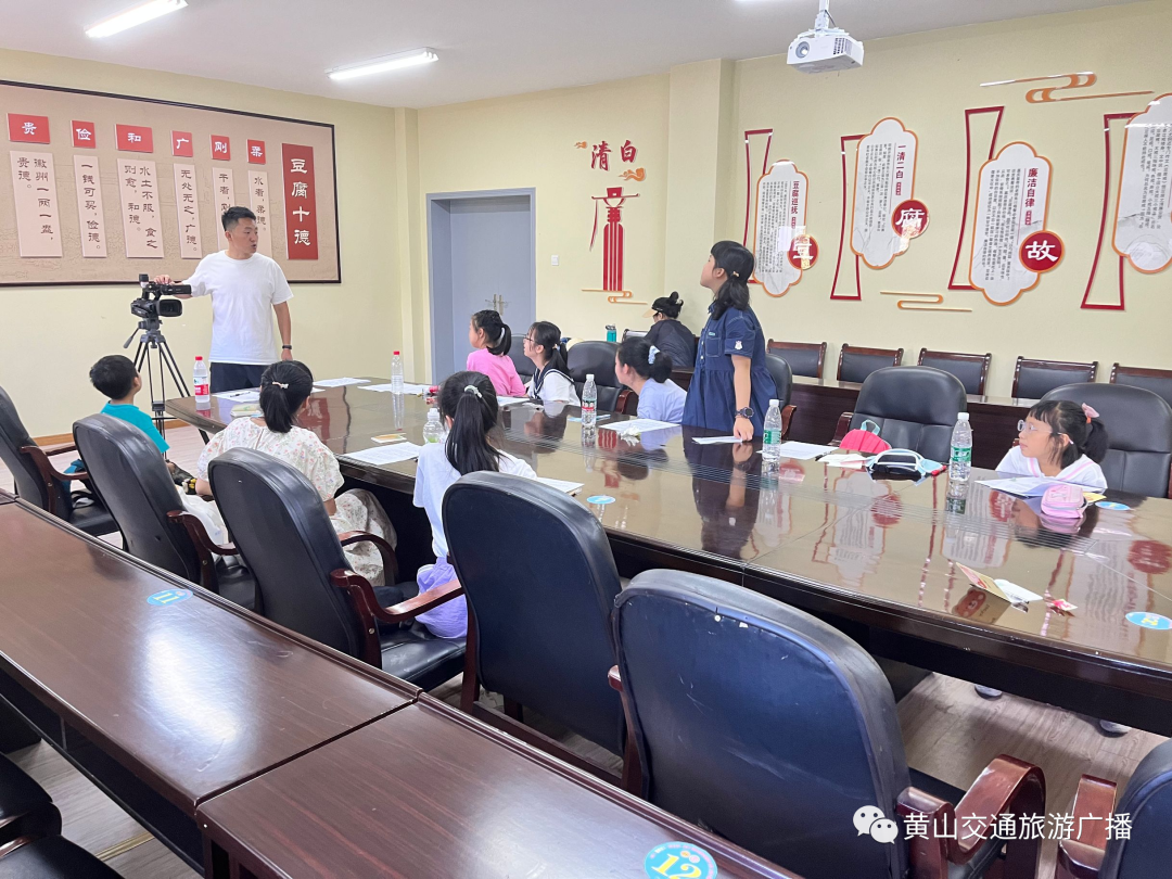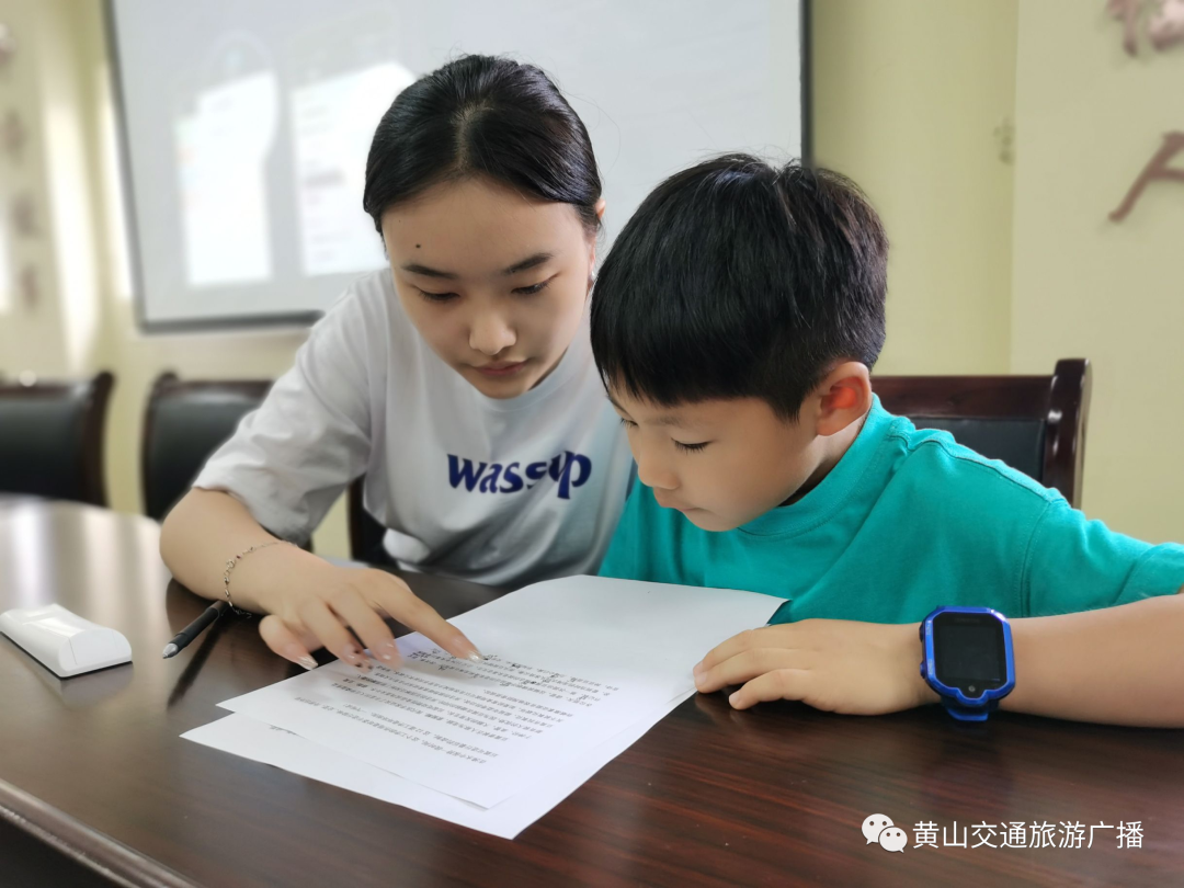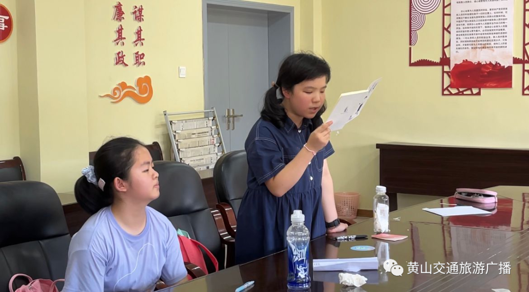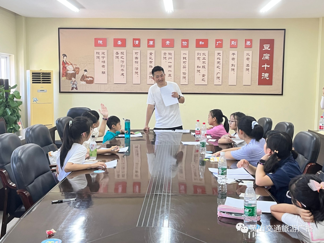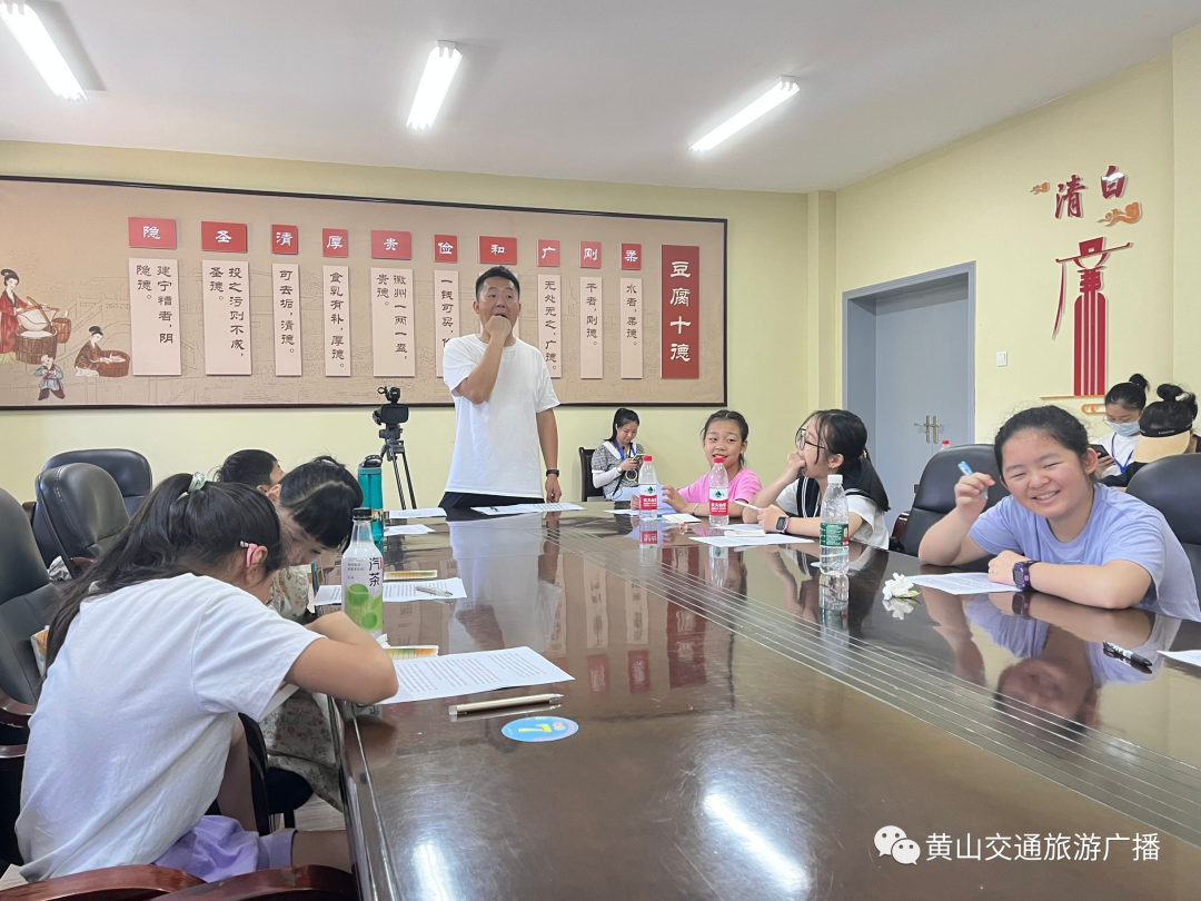 參觀完博物館,小小講解員們也該上崗了。在黃山交廣主播的帶領(lǐng)之下,小記者和小主播們開始學(xué)習(xí)有關(guān)豆腐博物館的講解詞。